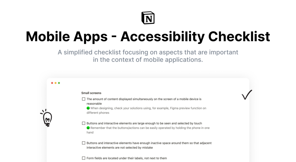 👉 With its easy-to-use format, you'll have all the information you need right at your fingertips. The checklist is built in Notion, making it accessible from anywhere and easy to share with your team. Whether you're a developer, designer, or manager, this tool will be an indispensable asset in your accessibility efforts.